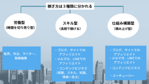 (積み上げ型)→ブログ、サイト、メルマガ、LINEでのアフィリエイト